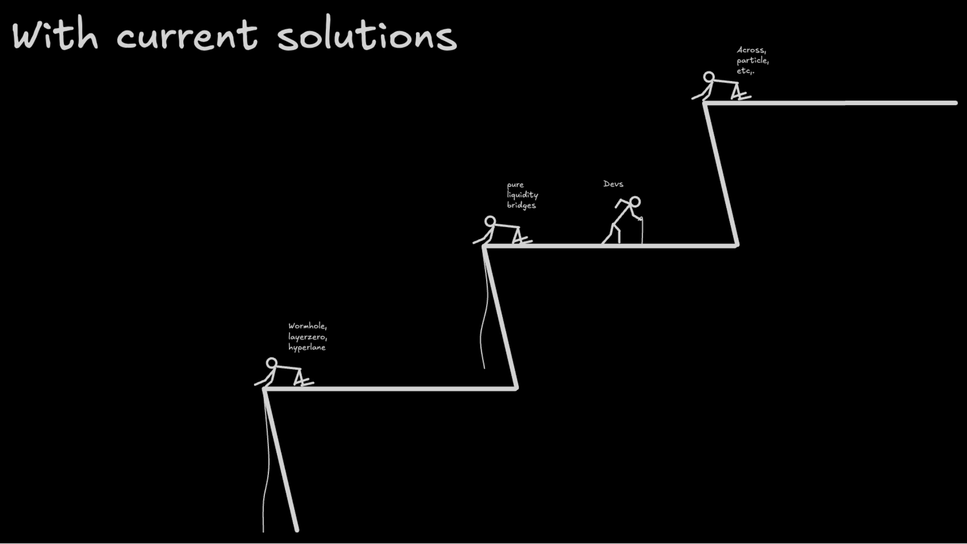 Today, as chains proliferate, bridges today don’t cut it for a seamless user and developer experience. Liquidity is distributed unevenly across ecosystems, and not all apps are able to tap into this liquidity as easily.
