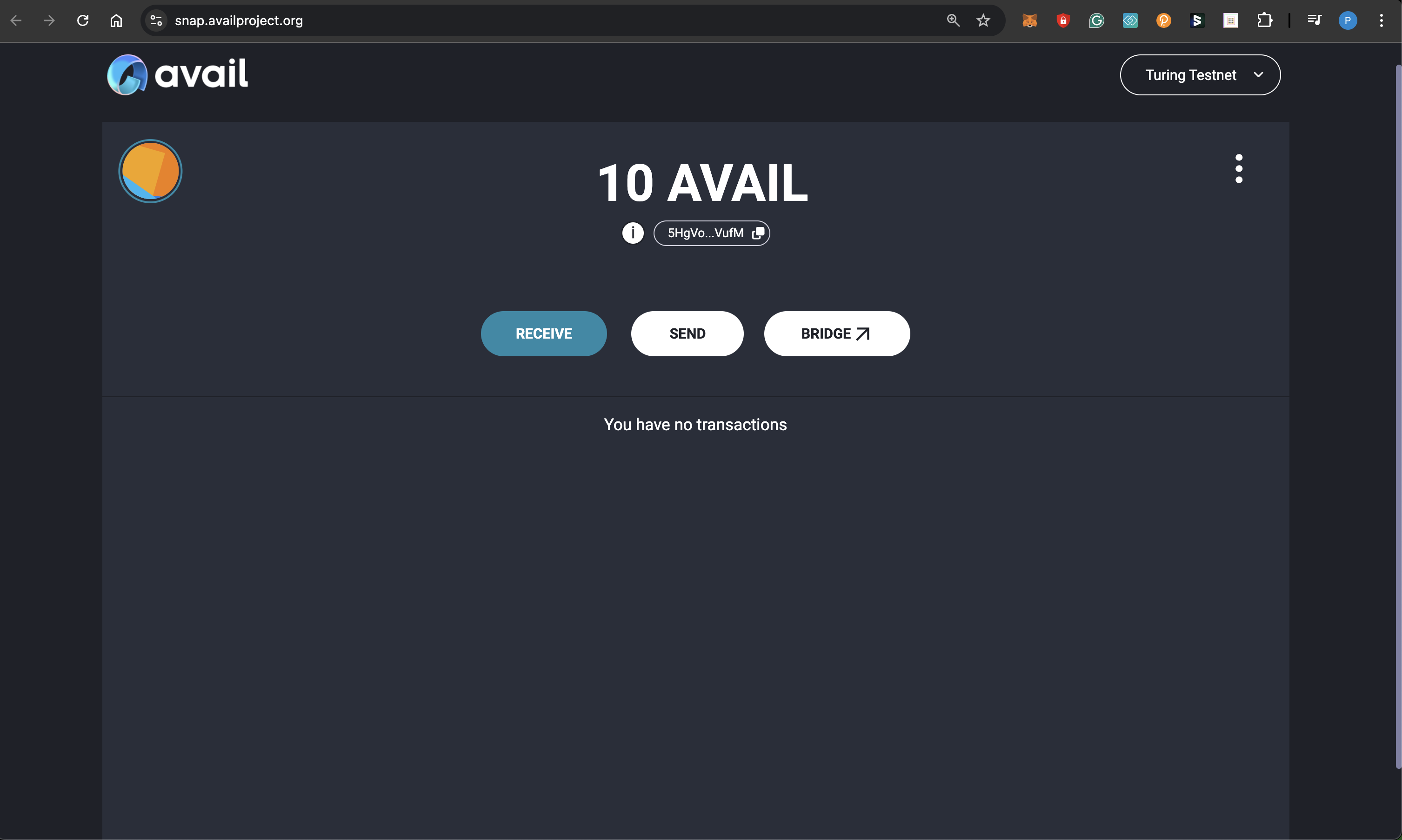 - You will need to send some AVAIL tokens to your new address before being able to make a transaction with it.